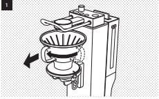 1. 먼저 드리퍼를 분리한다. 드리퍼를 분리하기 위해서는 드리퍼의 손잡이가 기계 정면을 향하도록 90도 돌려주어야 한다.