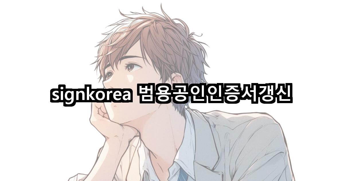 먼저 SignKorea의 공식 홈페이지에 접속하여 ‘인증서 갱신’ 메뉴를 클릭합니다. 이를 통해 갱신 페이지로 이동합니다.