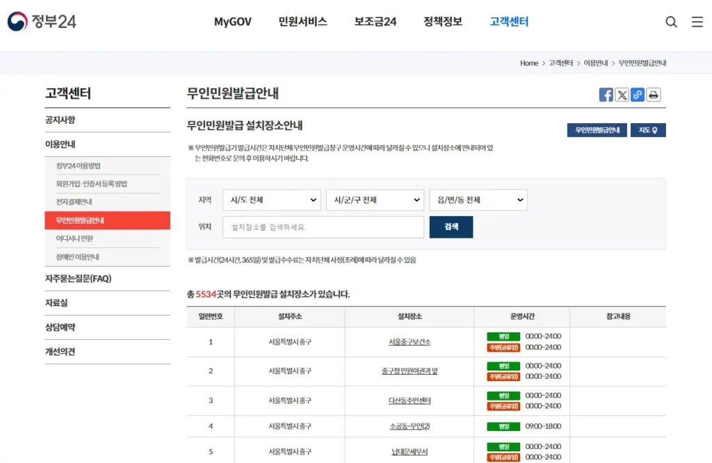 무인민원발급기 위치