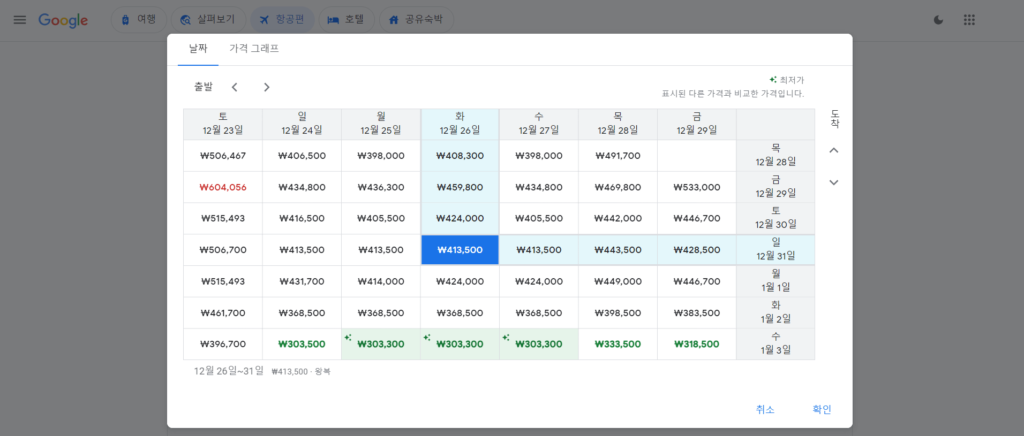 구글 항공권 가격 그래프