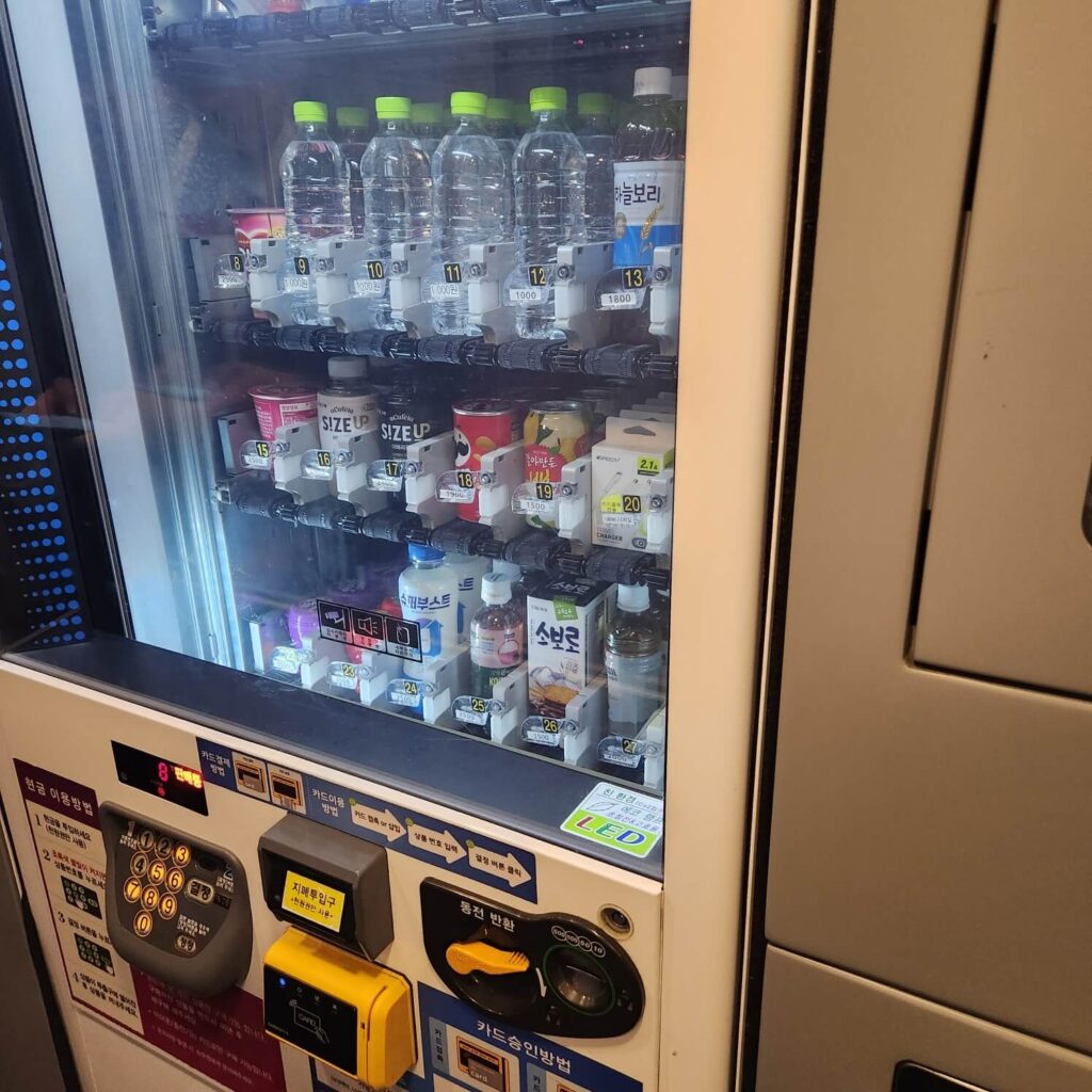 열차 내부에는 자판기가 있어, 간단한 음료나 간식의 구매가 가능하다. 카드 사용은 물론 삼성페이 이용도 가능하기 때문에 상당히 편리하다. 카드 사용시에는 카드나 삼성페이를 인식시켜준 다음, 상품번호를 입력하고 결정버튼만 눌러주면 된다.